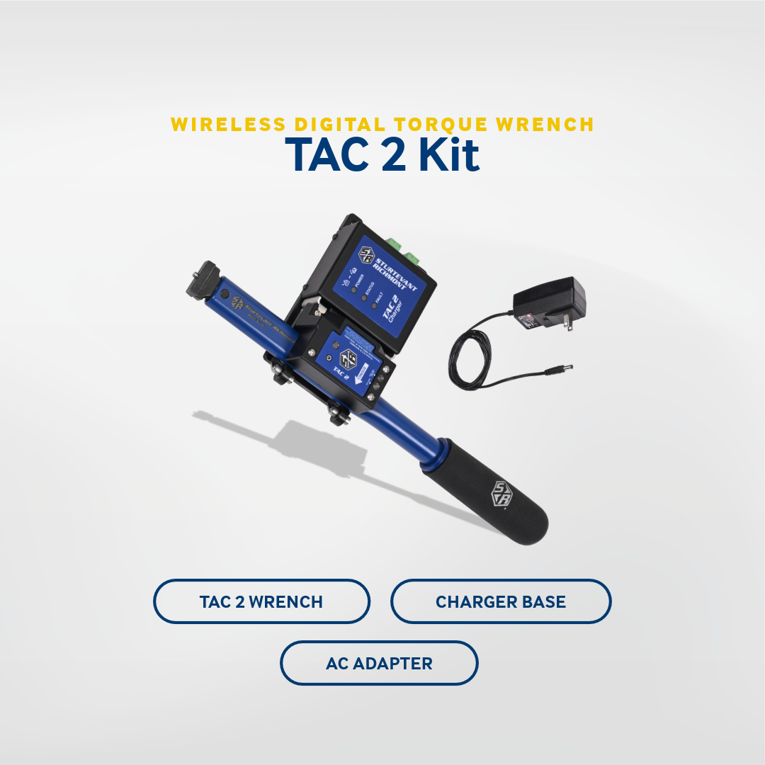 The TAC 2 offers precise torque and angle monitoring with two modes of operations: Peak and Torque Angle Monitoring (TAM). The TAC 2 features an audible click when preset torque is achieved, a green LED when specifications are met, and a red LED when they're not. The tools are durable and come with a powder-coated finish. Additionally, they wirelessly report time and date-stamped reports, and they are compatible with various controllers, offering torque accuracy of +/- 4%.